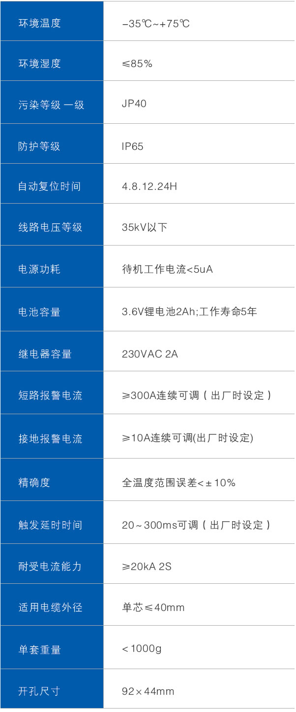 當供電線路有短路或接地故障發生時,短路或接地電流產生的電磁場變化,使固定在電纜上的傳感器中測量線圈產生脈沖信號,當脈沖信號的值的大小達到或超過設定的故障電流值時,故障指示器會自動記憶故障狀態,故障指示燈閃爍發出故障指示,同時通過遠程報警接口,將故障 信號傳遞給監控中心,工作人員通過故障指示信號能夠迅速準確地找到線路故障位置,及時排除故障,恢復電網供電。