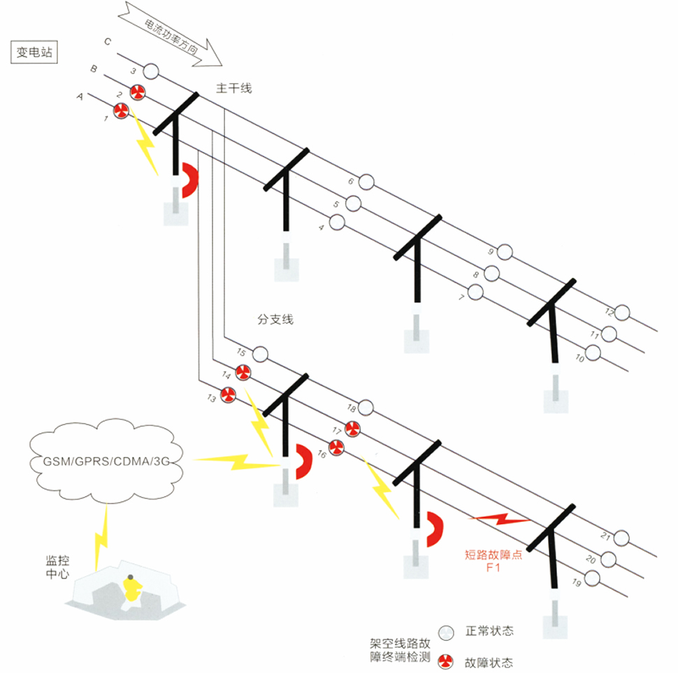 8.轉發給手機的信息只有故障點前面一個檢測終端的信息,避免故障點前所有終端發信息,造成手機收到幾十條短信,不易辨認具 體故障點。